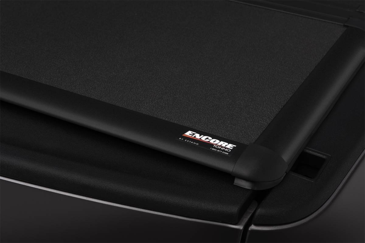 The Extang Encore Tonno is a low profile, hard tri-fold truck bed cover that offers unparalleled versatility. The Encore gives you easy access to your truck bed from the both front and rear panels! The EnCore truck bed cover is self-positioning for quick and easy installation. Extang engineered rear latches lock the cover at the tailgate and supplemental tethers secure your cover to the side rails. The wide-opening front panel provides quick access to the front of the truck bed and can be locked featuring BOLT , one-key lock technology. Extang-tuff 1-inch thick panels are made of automotive thermo-plastic (TPO) for unmatched impact resistance, superior UV protection and thermal stability. A textured, powder coated frame and matte black rubber components combine to make the Extang Encore Tonno more stylish, easier to use, and more water resistant compared to any other truck bed cover!