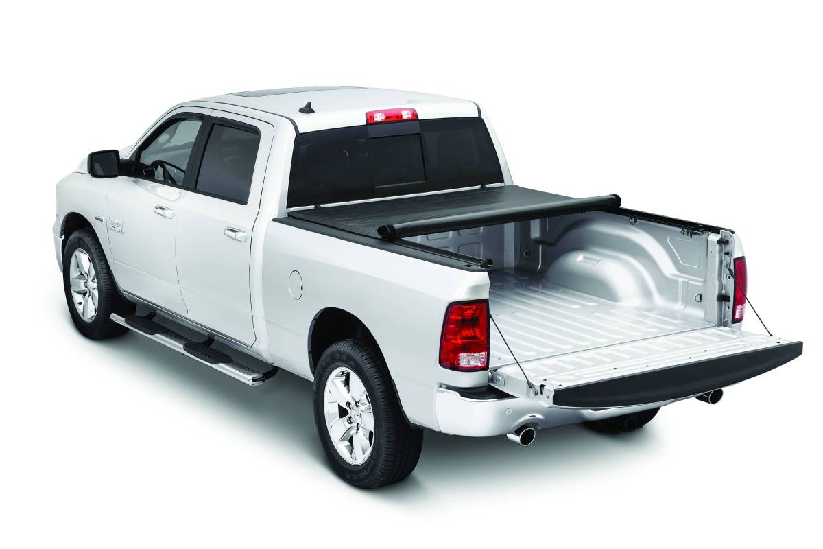 The Tonno Pro Lo-Roll Vinyl Tonneau Cover is a soft-rolling truck bed cover that provides you full access to your truck bed while ensuring great security and protection from the elements. The double-sided vinyl top is tear-resistant with marine-grade stitching. Lo-Roll provides you the security and functionality you need from a truck bed cover, combined with a low-profile appearance and stylish looks. Operation of this truck bed cover is a breeze, unlock at the driver side of the tailgate, roll to the cab and securely fasten. When rolled up to the cab, you have full truck bed access making hauling large cargo simple. Another great benefit from the Lo-Roll rolling truck be cover is that it is mounted inside the bed rails providing access for mounting any of your other favorite accessories. No-drill, quick and easy installation.