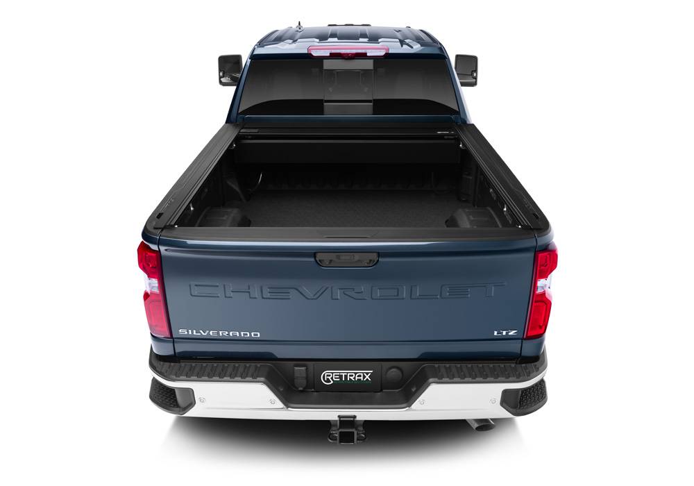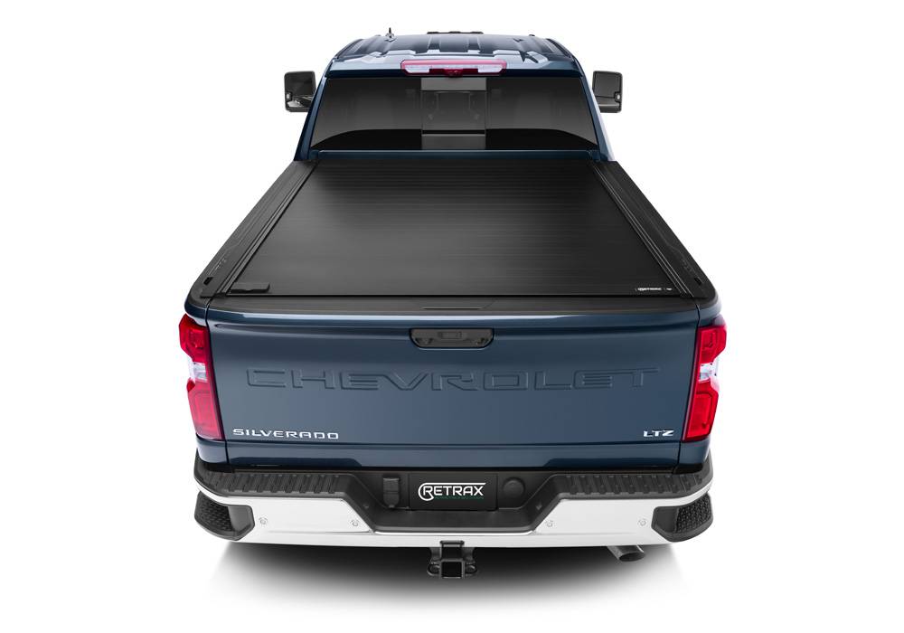 RetraxPRO MX Retractable Tonneau Cover - Rugged - Aluminum Construction - Matte Black - 2020-2021 Chevy Silverado/GMC Sierra 2500 HD/3500 HD 8' Bed without Factory Side Storage Boxes without Stake Pockets