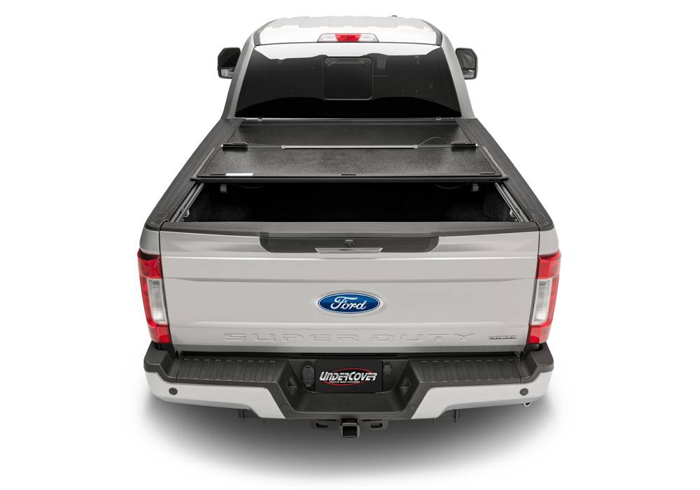 Introducing the next generation of folding covers -- the UnderCover Flex folding cover. Flex combines the best of both worlds, the security of a hard locking cover and convenience of a soft roll up cover. Constructed from the best materials available, Flex will withstand the abuse Mother Nature throws at it and keep coming back for more. Low Profile -- Ultra-low profile design rests inside the bed rails allowing for a very sleek look. Full Access -- Built in prop rods secure the cover allowing your truck to be driven with the cover fully open. Easy Removal -- Entire cover can be removed in seconds with no tools needed. Secure Design -- Plastic buckles and straps are included to secure the panels in the partially open position. FRP Composite Panels -- Lighter, stronger and higher dent resistance than aluminum. Weather Resistant -- Rubber seals and drain tubes channel water away from and out of the bed. Easy Clamp-on design. No other folding cover can match the Flex for versatility, security and function. Covered or uncovered, always an option with UnderCover.