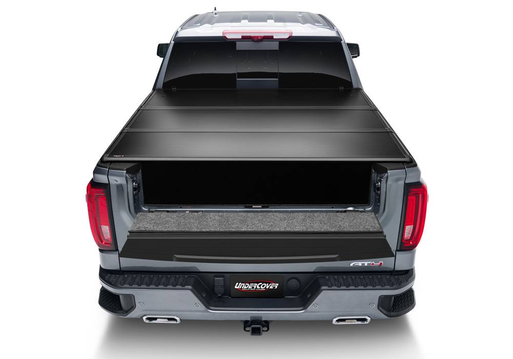 The TRIAD by UnderCover is a hard-folding truck bed cover featuring matte black panels for a sleek and innovative addition to your truck bed. Integrated perimeter seals protect your truck bed from the elements, while aluminum panels enhance the security of your truck bed and support up to 600 lbs of evenly distributed weight. The TRIAD has 2 available riding positions in the fully open and 2/3 open position for convenience to haul and manage most any cargo. The TRIAD is fashioned with easy-to-use tailgate clamps allowing quick access to the truck bed. The TRIAD hard-folding cover comes completely assembled to provide a quick and easy installation and backed by a 3-year warranty.