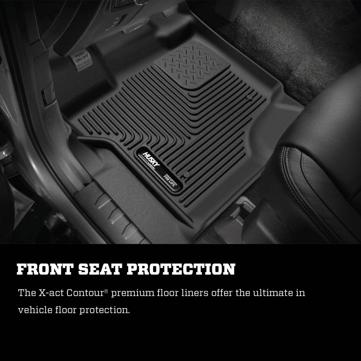 Line your floorboards with laser-fit toughness. X-Act Contour® mats are super-rugged wherever adventure takes you, soft and pliable where it counts. Our no-slip rubberized DuraGrip™ material stands up to whatever you're laying down with legendary Husky durability---guaranteed for life.